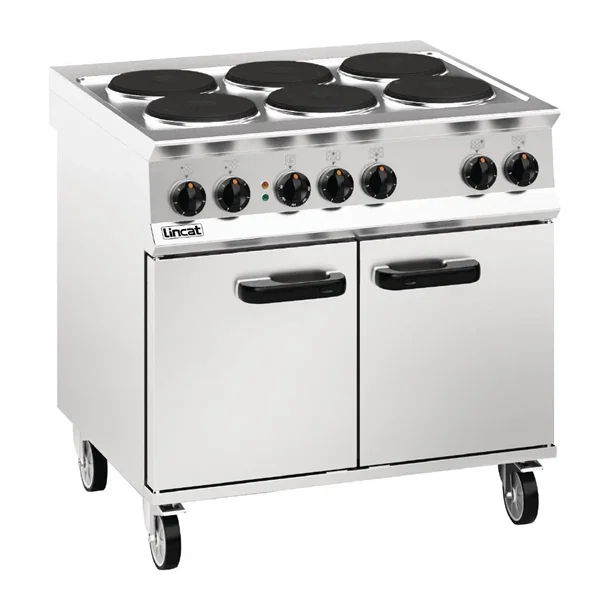 For comprehensive cooking, frying, boiling and searing, the Lincat Opus 800 Six Plate Oven Range combines commercial cooking power with a high degree of control. Each square cast iron hot plate is highly responsive and generates a precise level of heat from low gentle simmers to fierce boils, ensuring your meals are created precisely to your own recipe or requirements. Holding up to six full gastronorm pans, this oven can be effectively used for large batches of cooking in environments such as restaurants or canteens whilst sauces, gravy and other ingredients can be heated and monitored simultaneously on the hob.